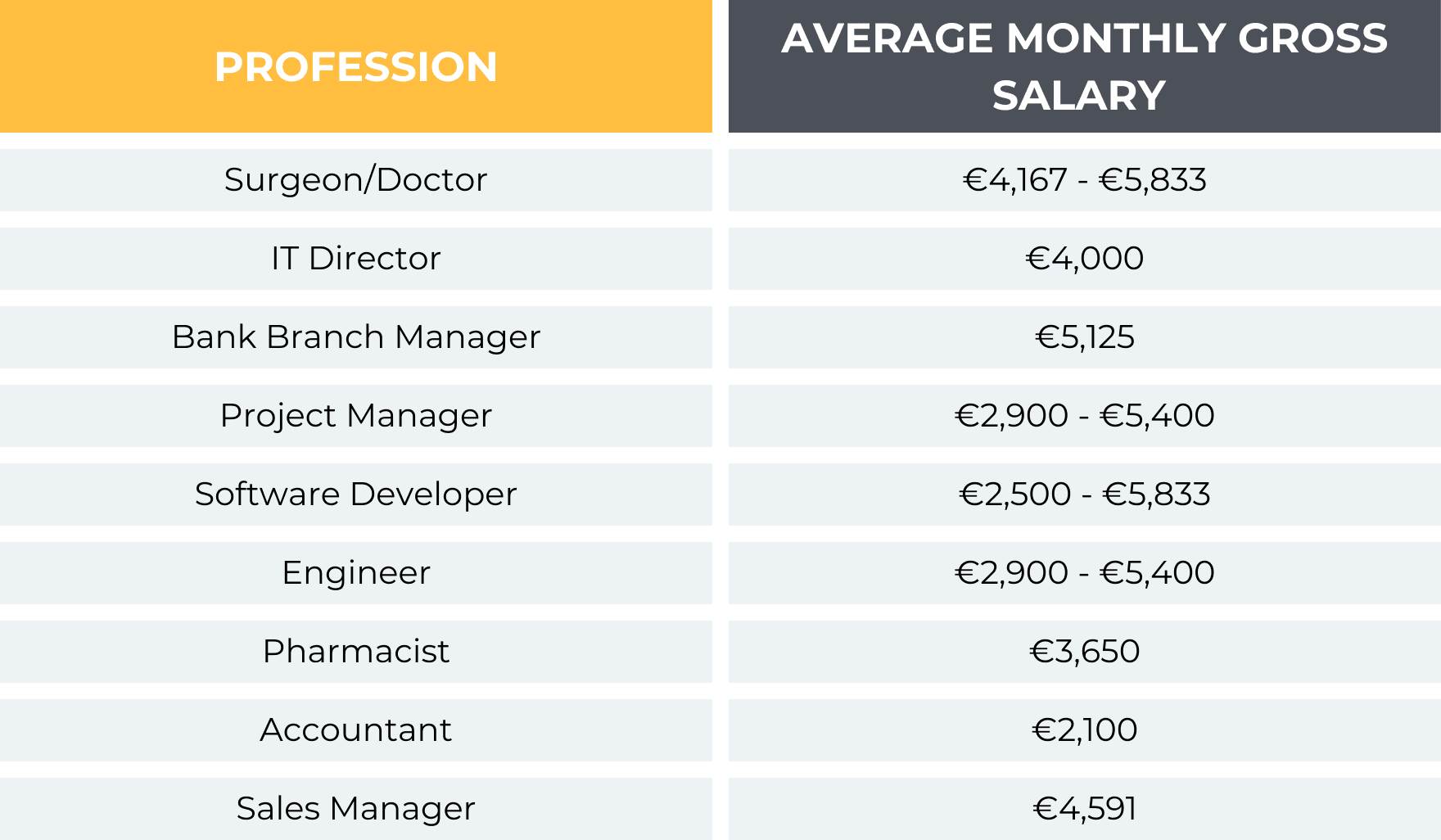 A key point for financial planning is the difference between the average and the median salary. The average can be skewed higher by top earners. In comparison, the median salary is lower, sitting around €23,000 annually.