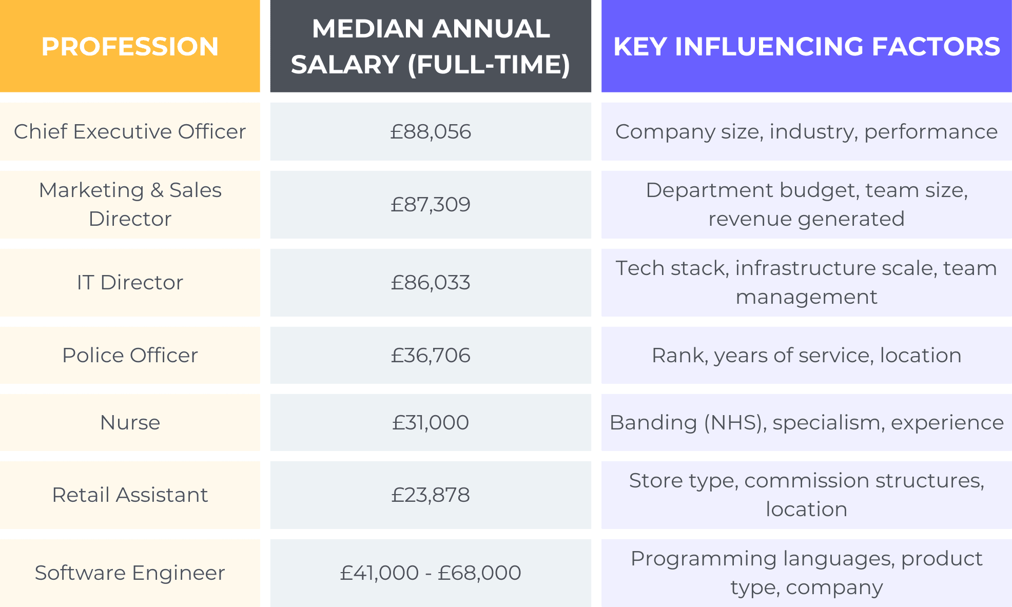Average salary in the UK by profession