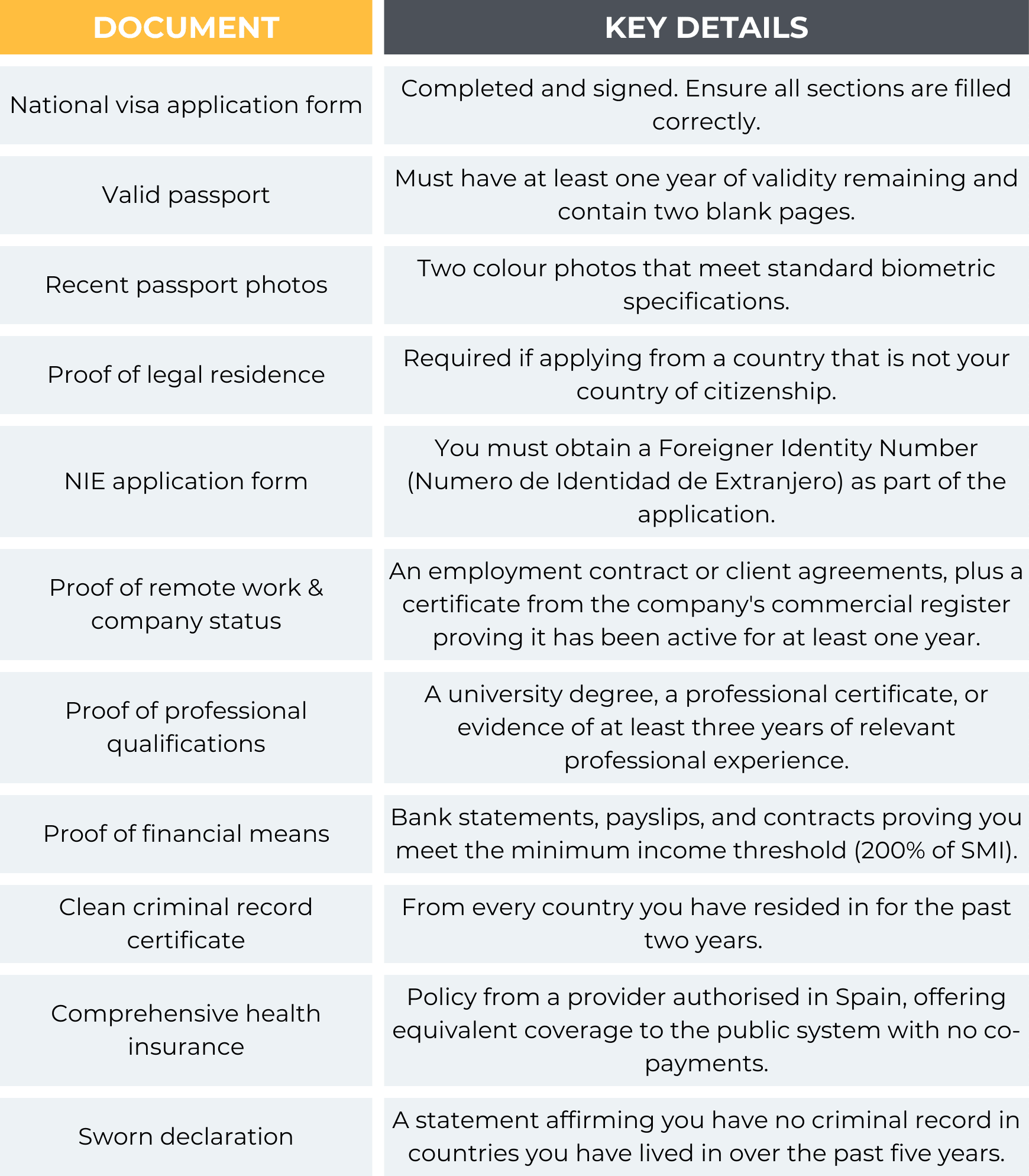Meeting the following digital nomad visa Spain requirements is essential for a successful application.