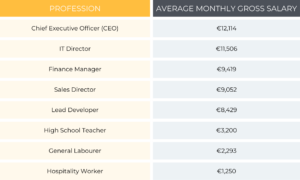 Outside major hubs, €40,000 could be sufficient. Additionally, the median gross annual salary provides a solid benchmark for a middle-class income.