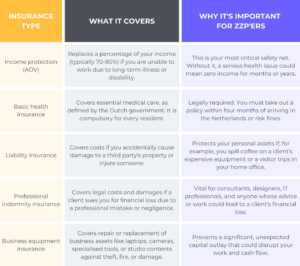 Dealing with the world of insurance can seem complex, but breaking it down into core types simplifies the process. Here are the essential covers every Dutch freelancer should consider: