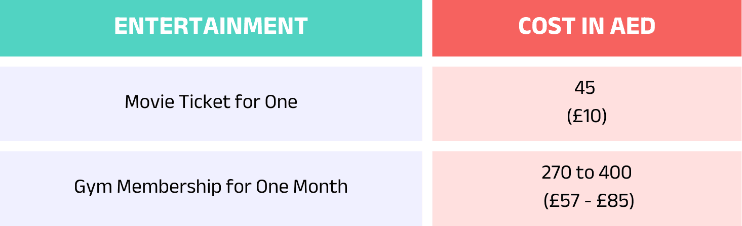 As reported by Driven Properties, the following tables show the average living costs in Dubai for 2025: