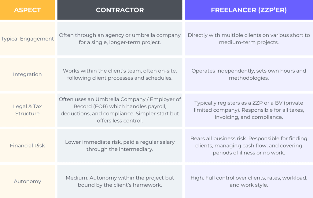 Many are drawn not just to a job, but to the freedom of building their own professional practice. Here, you can engage with the market as a contractor embedded within organisations or as a fully independent freelancer, known locally as a ZZP’er (zelfstandige zonder personeel). Understanding this distinction is your first critical step.