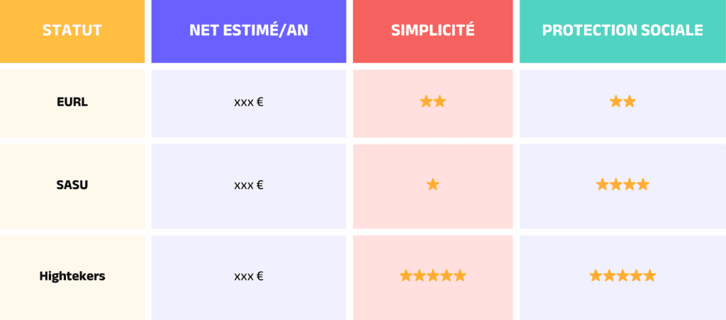 - Statut freelance : micro-entreprise, EURL, SASU, portage (gestion Hightekers).