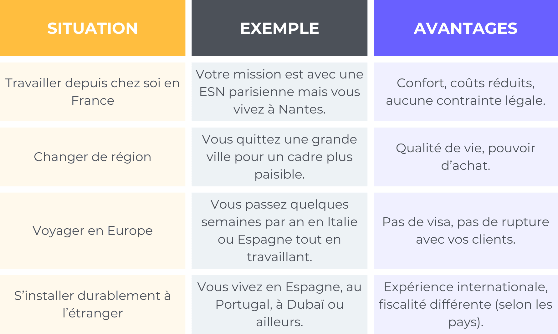 Contrairement au télétravail salarié, le full remote en freelance n’est pas défini par une politique interne d’entreprise. Il repose sur une réalité simple : votre localisation n’a plus besoin d’être liée à celle de vos clients. Cela ouvre la voie à plusieurs scénarios pour les freelances français et internationaux :