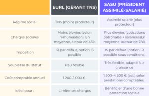 SASU = protection sociale et flexibilité mais charges et coûts de gestion plus élevés.