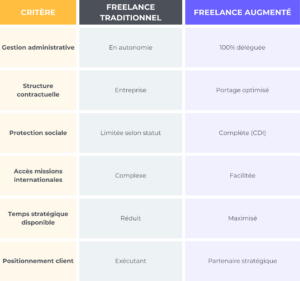 - Tableau comparatif : freelance vs freelance augmenté